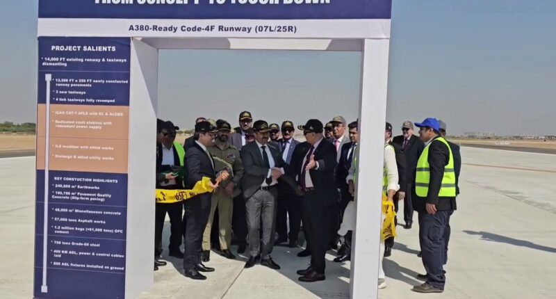 KARACHI – In a significant boost to Pakistan’s aviation infrastructure, the Secretary of Defence, Lt. Gen. (Retd) Muhammad Ali, officially inaugurated the newly reconstructed main runway at Jinnah International Airport today. The first commercial flight is scheduled to touch down on this state-of-the-art landing strip on February 19.