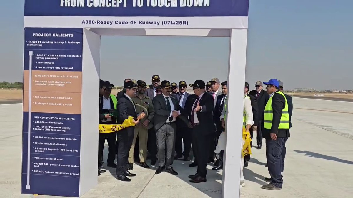 The reconstruction of runway 07L/25R was completed within a record timeframe of 18 months. Notably, the Pakistan Airports Authority (PAA) achieved this milestone without any cost overruns or delays, a feat praised by the Secretary of Defence. The runway has been upgraded to Code 4F international standards, meaning the new strip is now capable of accommodating “Super Jumbo” aircraft, including the Airbus A380. This upgrade positions Karachi as a more competitive hub for international long-haul carriers.